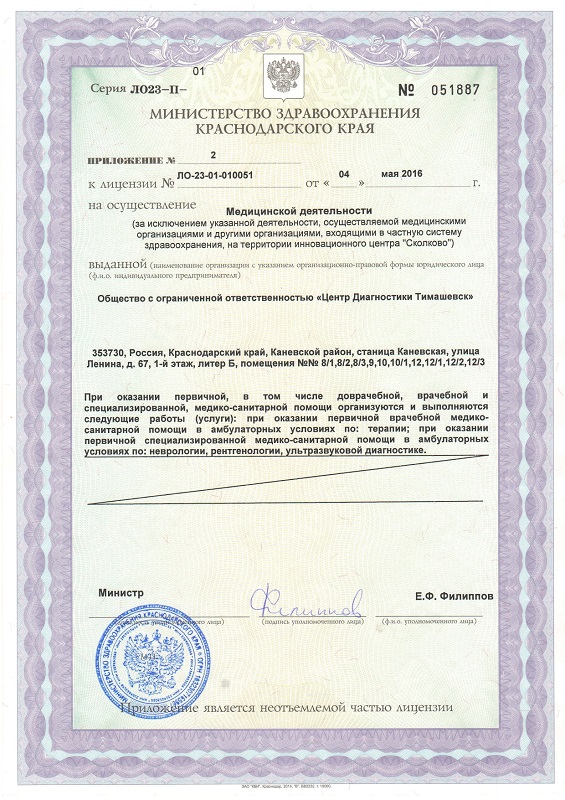 Приложение №2 к лицензии